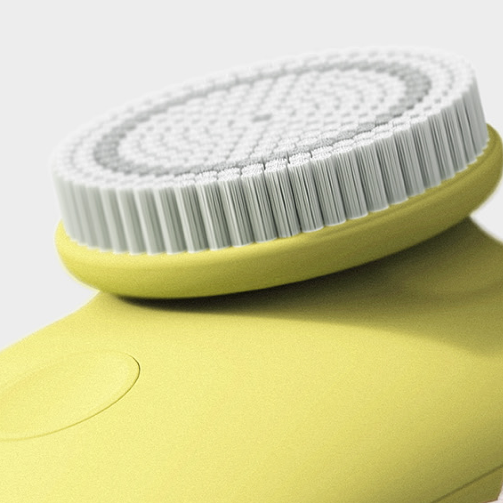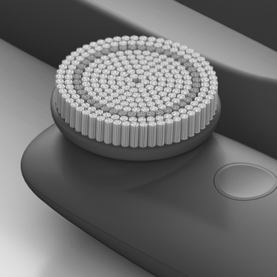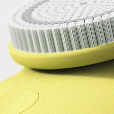 Нанесите пену на лицо и осторожно проведите щеточной головкой круговым движением от центра к сторонам лица. Втирайте щеточной головкой очищающий гель/крем до образования пены.